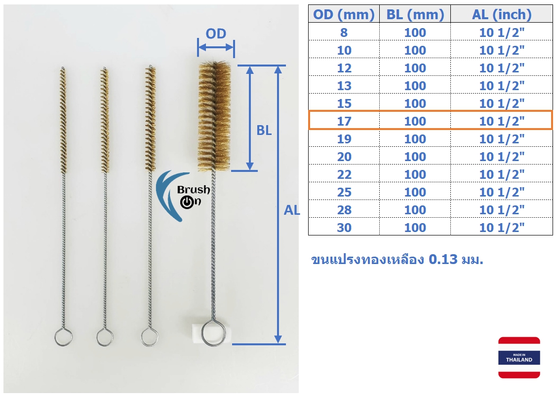 แปรงแยงจุ๊บ แปรงล้างท่อ แปรงทองเหลือง แบบมีห่วง ขนทองเหลืองแท้ 0.13 มม.